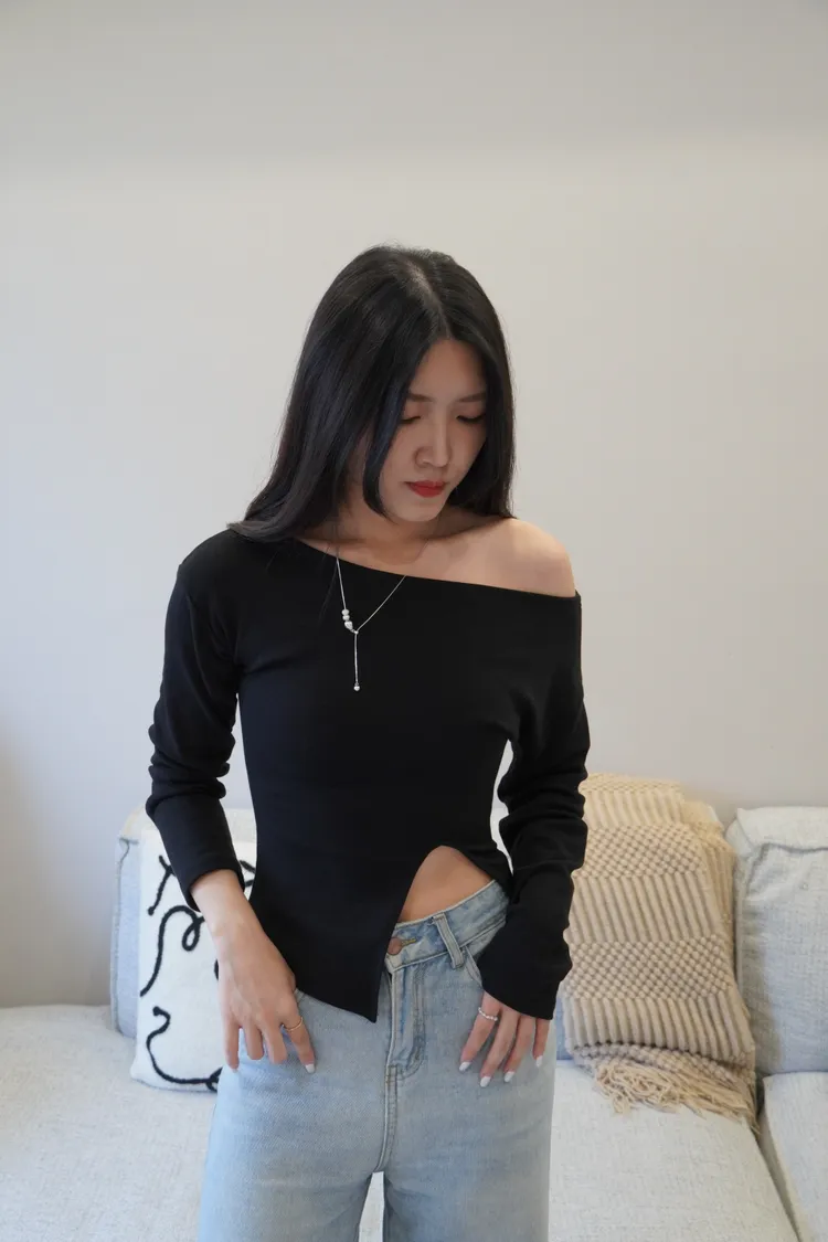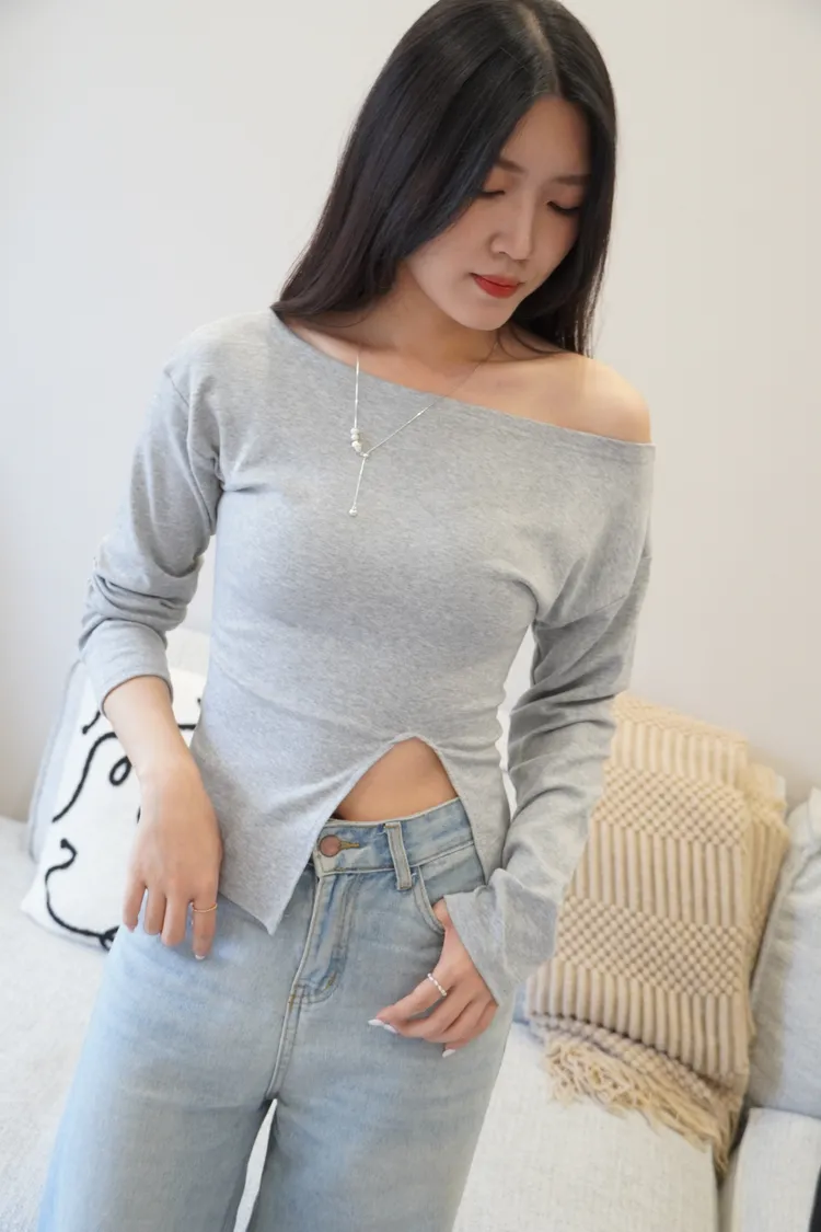 必買!法式感彈性好剪裁上衣(黑/灰)