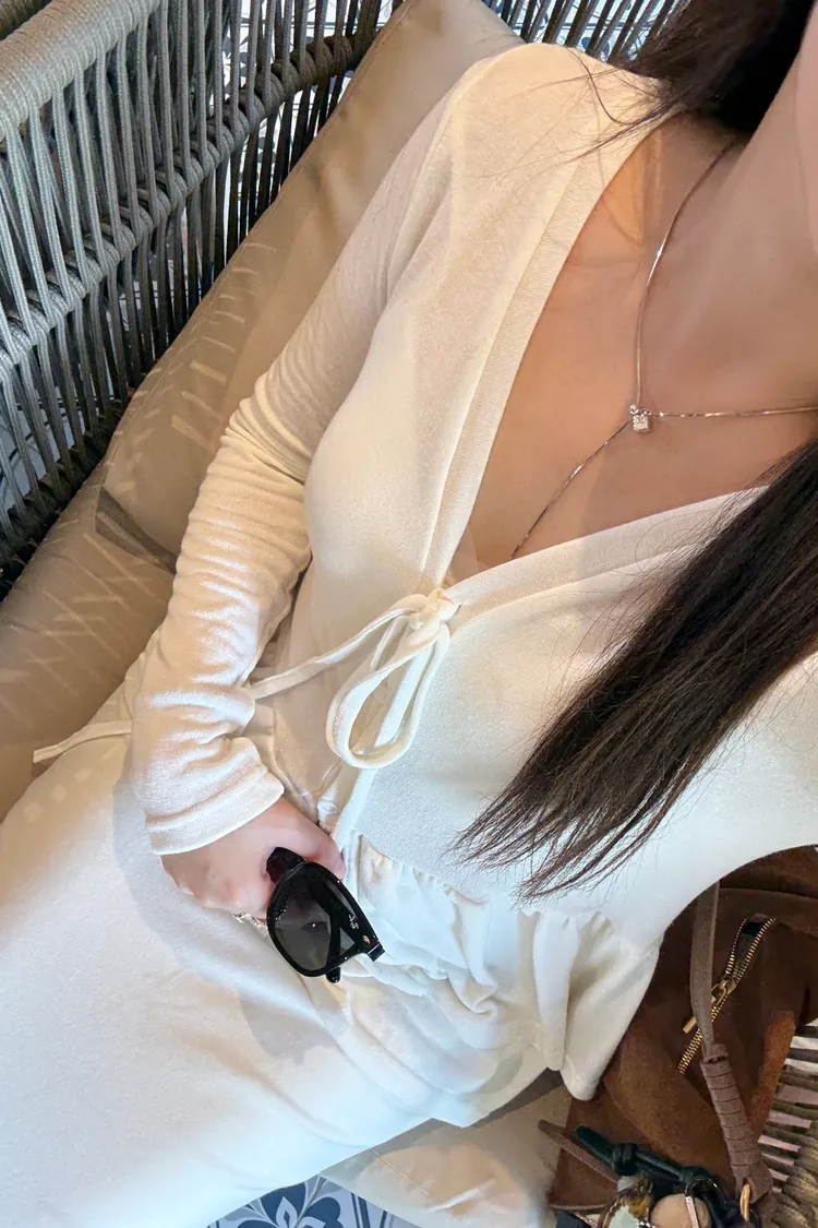 仙氣飄飄 v領綁帶上衣(2colors)
